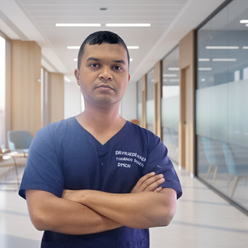 FCPS(Thoracic surgery) MS(Cardio-thoracic surgery) Specialist in Thoracic Surgery Assistant Professor, Thoracic surgery Dhaka Medical College Hospital